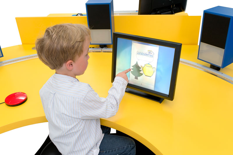 - 2 Flachbildschirme, welche auf der rechten und linken Seite des Kindertisches angeordnet sind, dienen zur Darstellung von Standbildern, bewegten Bildern und Video-Sequenzen bis zu einer Länge von 30 Sekunden.