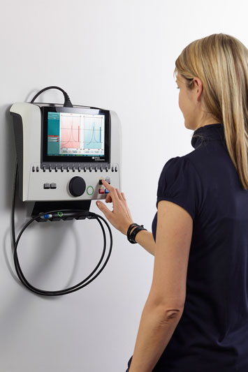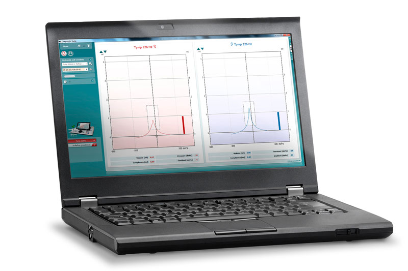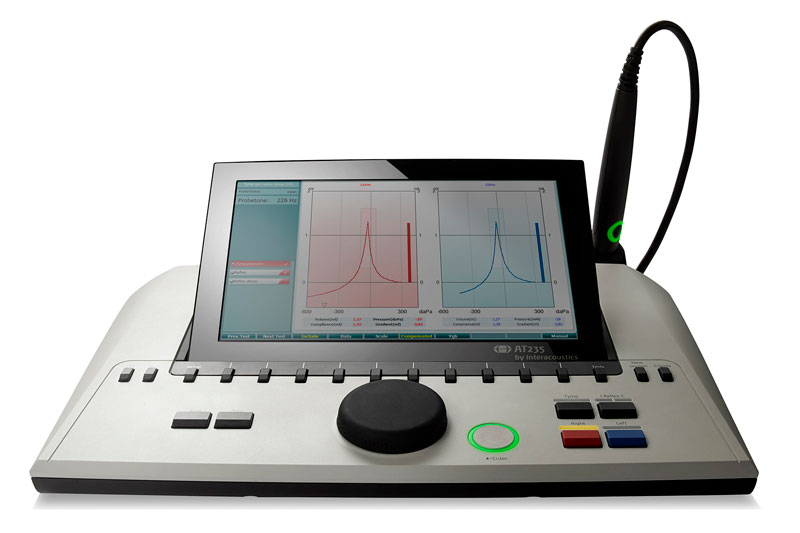 Das neue Tympanometer AT235 vereint die Vorteile der klinischen Geräte mit der Flexibilität der Screening-Geräte. Es ermöglicht manuelle und automatische Testabläufe durch ein entsprechendes Pumpensystem mit einstellbaren Pumpgeschwindigkeiten. Durch Funktionstasten wird eine leichte Bedienung und Menüführung sichergestellt. Alle Messergebnisse werden in Echtzeit grafisch dargestellt, gespeichert und können über den eingebauten Thermodrucker ausgedruckt werden. Alternativ besteht die Möglichkeit das Gerät über USB an einen PC anzuschließen. Die Messdaten können dann in der Software Diagnostik Suit gespeichert und ausgedruckt werden.